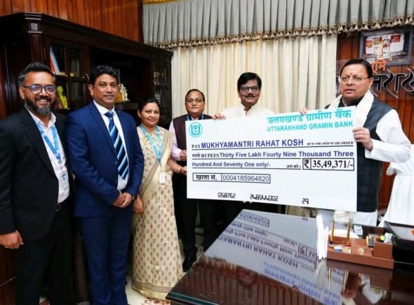 देहरादून : मुख्यमंत्री पुष्कर सिंह धामी से मुख्यमंत्री कैंप कार्यालय में उत्तरांचल ग्रामीण बैंक के प्रतिनिधियों ने भेंट की। इस दौरान बैंक के प्रतिनिधियों ने उत्तराखण्ड में आपदा प्रभावितों की सहायता एवं पुनर्निर्माण कार्यों के लिए ₹ 35,49,371 की धनराशि मुख्यमंत्री राहत कोष में प्रदान की। मुख्यमंत्री ने इस सहयोग […]